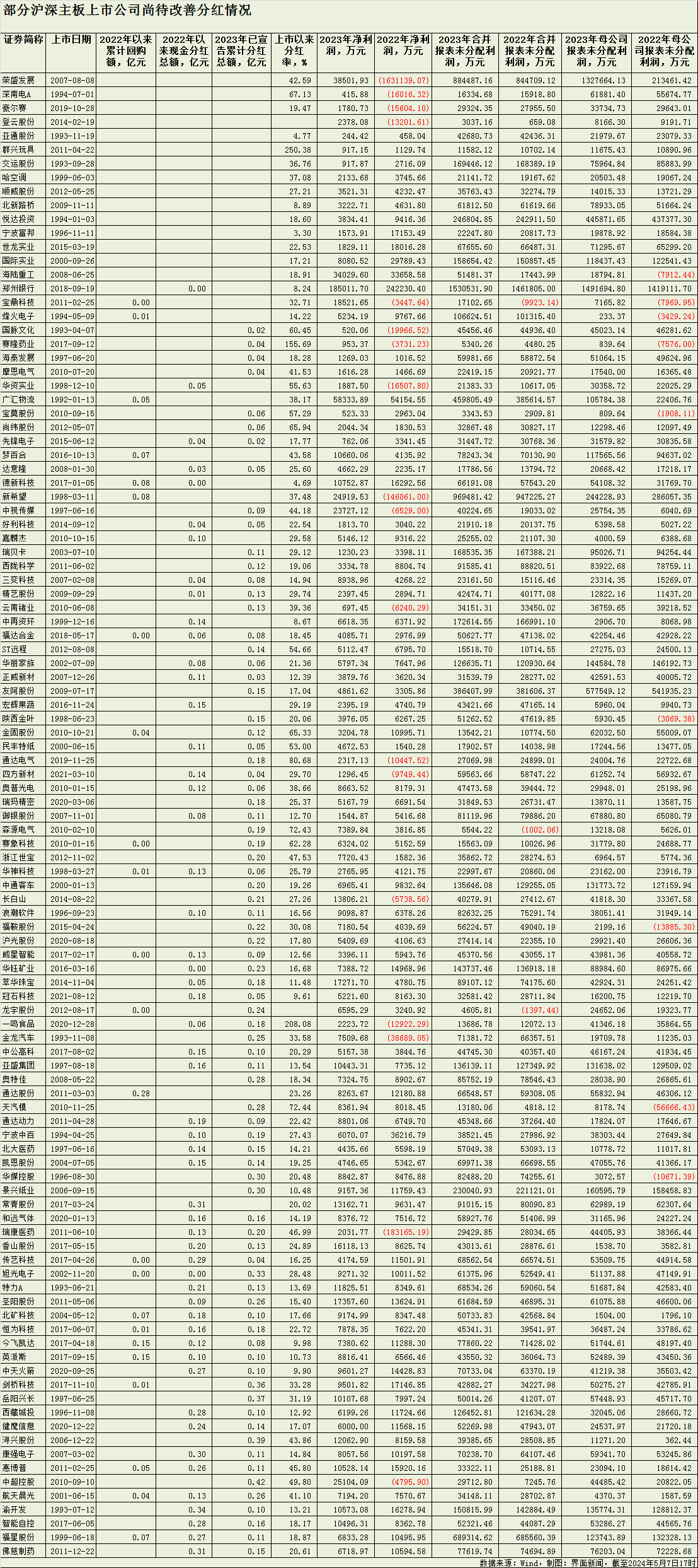 A股公司分红力度已明显加强。界面新闻汇总Wind数据显示,5113家沪深上市公司中,3625家发布2023年年度利润分配预案,占比超七成。