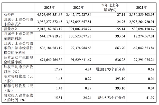 4月25日,科创板上市的创新药龙头企业艾力斯发布了2023年年报以及2024年一季度财报。财报显示,2023年艾力斯实现营业总收入为20.18亿元,同比增长155.14%;实现归母净利润为6.44亿元,同比增长393.54%。
