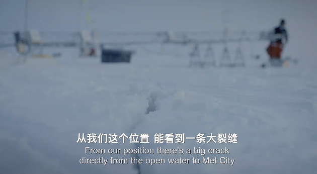 地面开裂,是北极考验的第二项。在300多天的调研中,无数次地面震动与开裂,让科考队员的神经紧绷。发动机混杂着踩雪的声音,谁也不知道下一秒钟是否会坠入无尽海洋。即便意识到了情况不妙,人类在大自然面前,依然无处可逃。