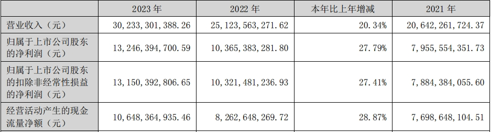 2023年,泸州老窖新加入“300亿俱乐部”成为一大亮点。2023年全年,泸州老窖实现营业收入302.33亿元,同比增长20.34%,各项生产经营指标再创历史新高。
