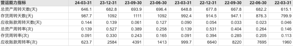 再从存货周转数据来看,存货周转率从刘淼上任后一路降低至2023年的0.33。存货周转天数则从2015年的293天一路下降到2023年的1092天,较2022年底的914.5天进一步降低。