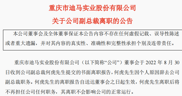“企业高管变动主要为个人发展要求,与公司业务发展及战略规划无关。”迪马股份介绍。