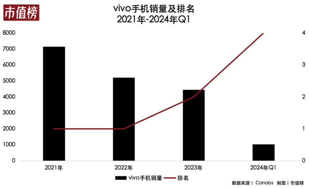 2024年第一季度,两家机构数据显示,vivo出货量再次超过苹果成为TOP1,也有数据显示vivo在第四,但出货量和前面咬得很紧。