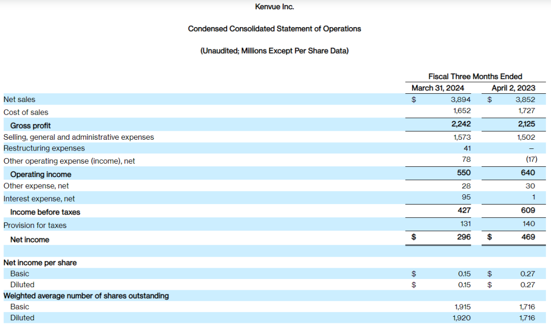 5月7日,由强生分拆出来的独立新消费集团Kenvue科赴公布了截至2024年3月31日的第一季度财报业绩。