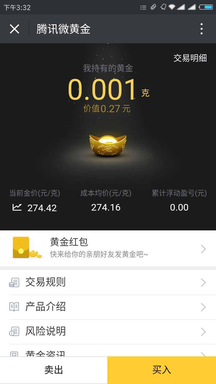 据财付通工作人员介绍,即使在公测后黄金红包也必须通过“腾讯微黄金”才可以发送,黄金红包的单位以毫克计量,即购买黄金以0.001克起,目前不到3毛钱,且买入黄金和发黄金红包的过程中不需要任何费用,参与门槛极低。