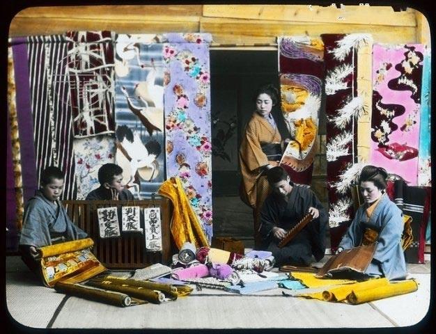 他们的丝绸自然也是日本最高级别的,上面有传统手工绣图:一种叫“幸运丝雀”,另一种叫“美妙时光”,精美至极,光彩夺目。