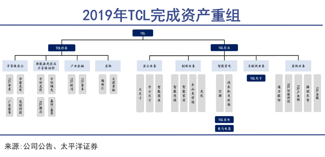 一年后,确立为以TCL电子为核心的智能终端事业群、以TCL华星为核心的半导体显示及材料事业群、以TCL中环为核心的半导体与新能源材料三大业务板块。