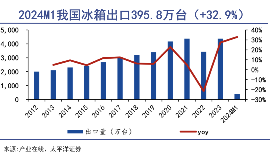 受益于全球消费复苏、海运价格回落等因素,冰箱出口景气度持续升高。海关总署数据显示,今年一季度,我国冰箱出口额同比大增33.2%,出口量同比增长34.4%。
