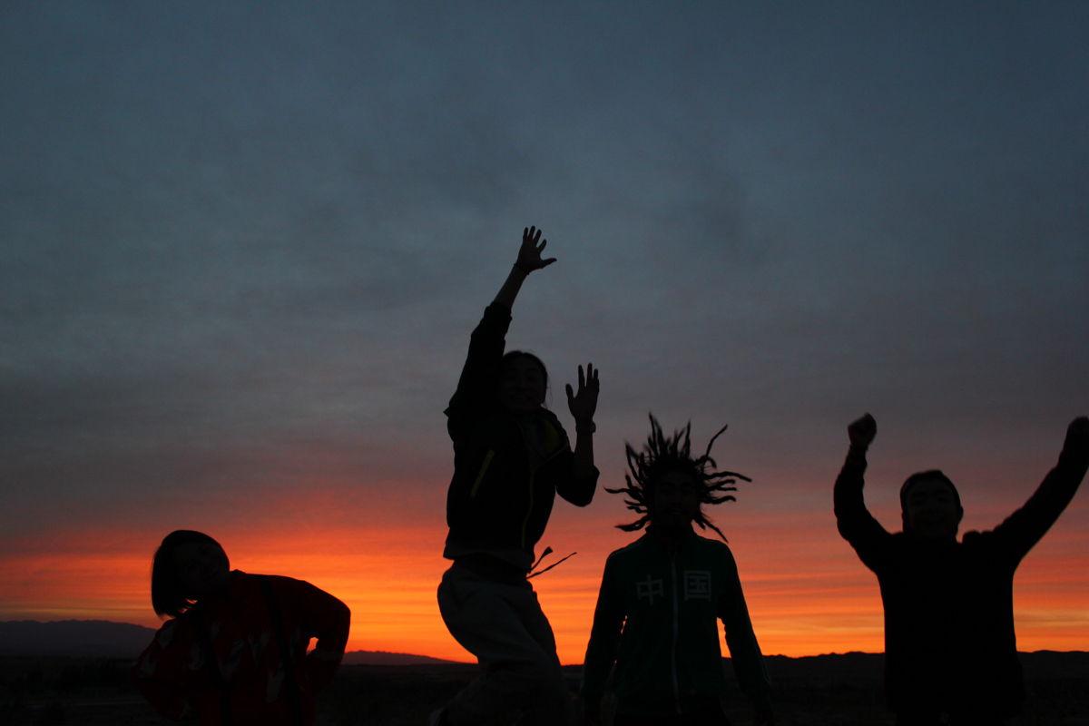 时隔一年重新进入西北戈壁,老王和贝姨特别兴奋,新朋友文森和泓一的加入也使旅途充满活力。在从北京出发第二天便收获了火烧夕阳,大家都特别激动,停车后在附近的小土堆之间上串下跳,一直玩耍到天黑。在夕阳落下余晖浸染的时刻,老王提议一起合照留念,于是在四个人疯狂的更换姿势之后,这剪影就凝固在了孤独的宁夏川。