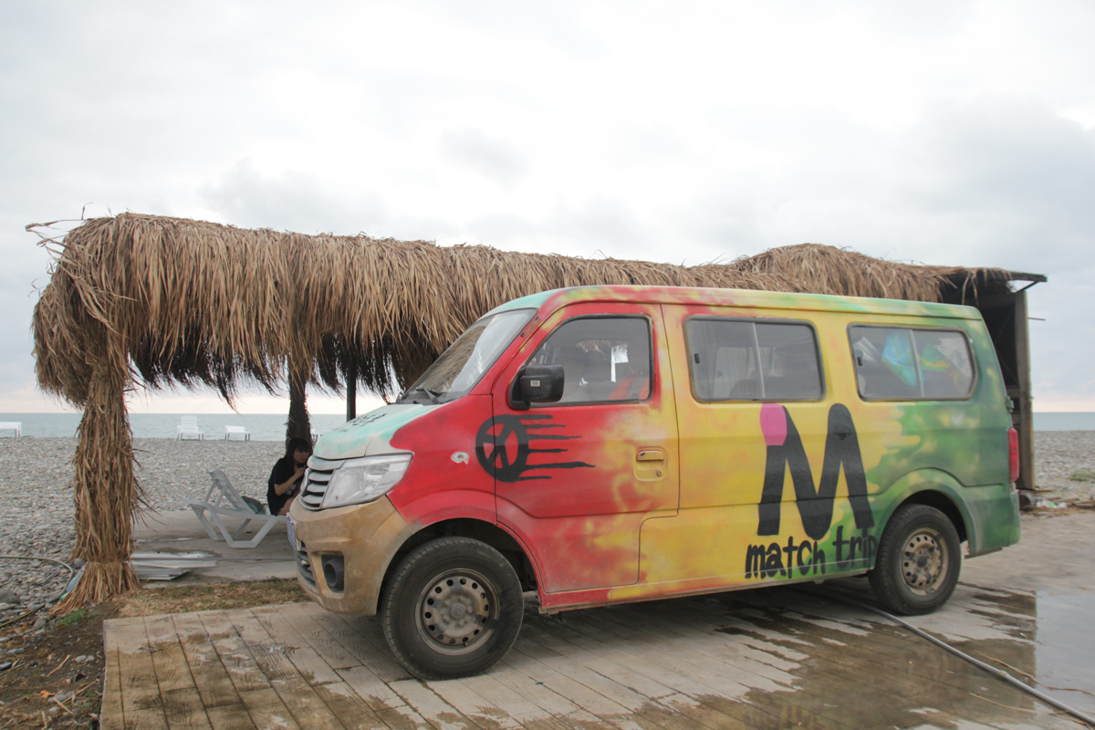 在终于摆脱了南俄罗斯各共和国的混乱局面后,面包车进入美好的格鲁吉亚。从过海关开始,格鲁吉亚的工作人员就展现了全新的面貌,脑子里没有“打劫”,开着玩笑气氛活跃地讲解在格鲁吉亚旅行的注意事项,非常热情地欢迎面包车的到来。在饱览北部gercheti山区的旖旎风光、首都Tibilisi活力十足的夜生活之后,一路向西行驶至格鲁吉亚位于黑海畔的batumi,一条小路让面包车邂逅了一位温暖的黑帮老大。他叫老詹,在当地拥有两家餐馆和一个海边小屋,小屋用于出租晒太阳的躺椅。相遇前一晚深夜,老王和帅帅听见不远处有人在大声播放音乐,由于四周空旷,所以声音非常明显,当时他们以为是一群年轻人在开派对,第二天才了解到当晚老詹一个人吃了兴奋剂,独自舞蹈到天亮。在白天看到面包车后邀请大家去小屋坐,这一坐就是三天,三天里老詹没有让我们出过一分钱,美食与美酒招待,他说认识我们是神给予他的礼物。