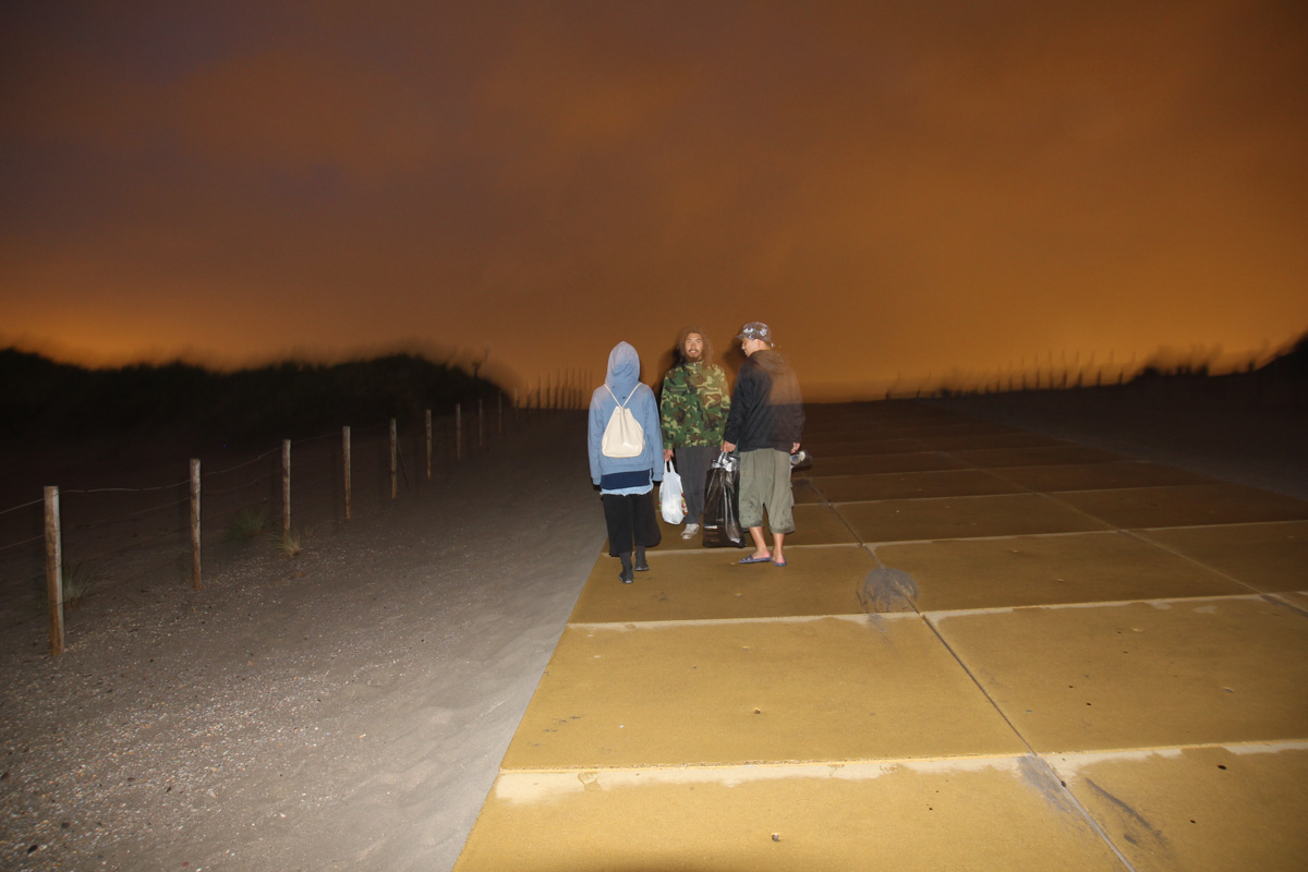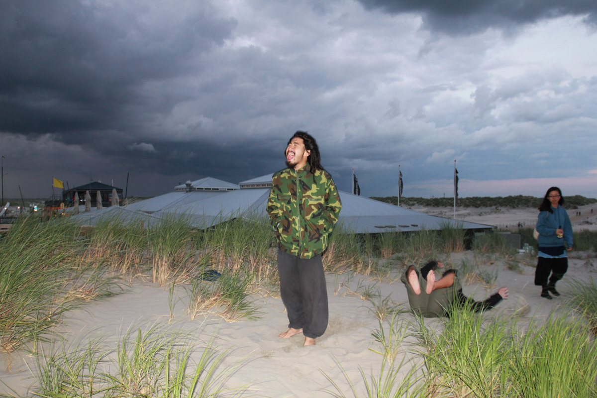 还是在这片荷兰“最干净的沙滩”,乌云带来的突然暴雨在意料之中,滞留美景中的大水、屾师傅、老王和贝姨坐在一个咖啡馆的屋檐下躲雨,不时还有散落的游人不顾全身湿透往回狂奔,而他们四人分外嬉皮地坐在一个类似舞台的位子,看着眼前的场景不觉发现自己仿佛置身戏剧之中。约莫1个小时左右,雨渐渐地停了,空气变得十分清新。这片沙滩除了他们已经没有一个人了,四个人走在这个属于他们的世界里,沿着回停车场的路或慢慢地散步,或小跑追逐,而夜晚也才刚刚过去四分之一。