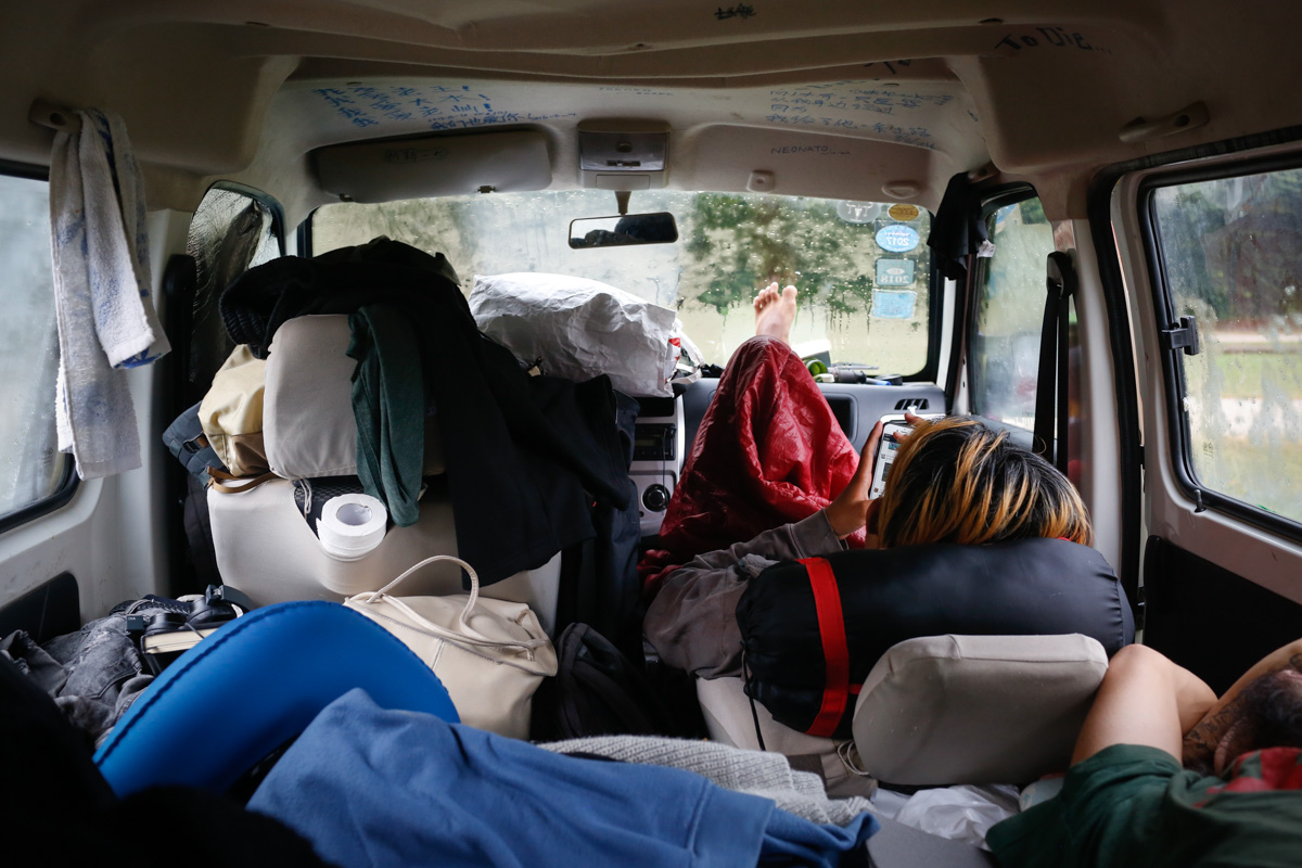 这是在荷兰的最后一个晚上,大家因为这个国家十分和平而不舍得离去。既然是最后一晚,一个隆重迷醉派对是必要的仪式。贝姨在从没有来过这片区域的情况下十分精确地找到一处人迹罕至的干净海滩,大概下午6时停车,迅速搭好帐篷之后所有人走到沙滩,开始了在荷兰最后一次野外晚餐。随着天色变暗,大概也都进入了状态,各自发现着视线中不同的美景。可好景不长,大风还是吹来了一片乌云,降雨后大家不得不钻进车内,虽然转场,但是派对还要继续,五个人挤在一个空间,十分温暖。老王忽然放起了列侬的