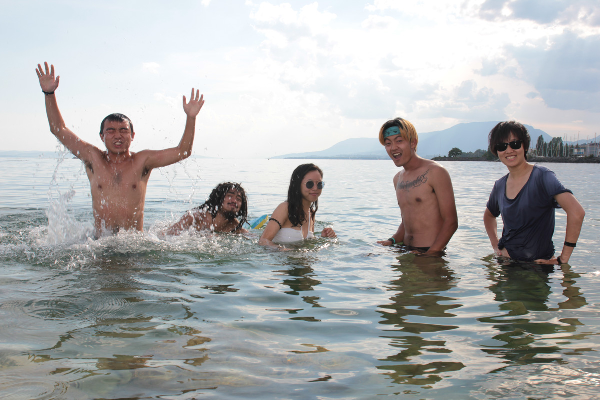 连续五日高温让车上的五个人对洗澡充满了期待,贝姨已经顾不上本来要计划去哪了,打开地图,找到离得最近的那片蓝色区域并开始全速冲刺。Rlle William-Mayor是通往纳沙泰尔湖最后的一条路,视线的尽头就是湖,旁边还有一条沿湖火车道。为了尽快地进入湖水,贝姨第一次决定把车停在收费的的停车场里。换上了之前就准备好入水的泳服后直接飞奔到午后艳阳下的湖边公园,看到草地上悠闲地躺着刚从水里上来的人们。当身体进入湖水的那一刻,五个人都解放了,这也是自大水和屾师傅上车后第一次下水,对于五个不会游泳的人来说,潜水可能是最充满乐趣的共同爱好。一直到一片乌云袭来,大家才不得不收拾好,和这片温柔的湖挥手作别。