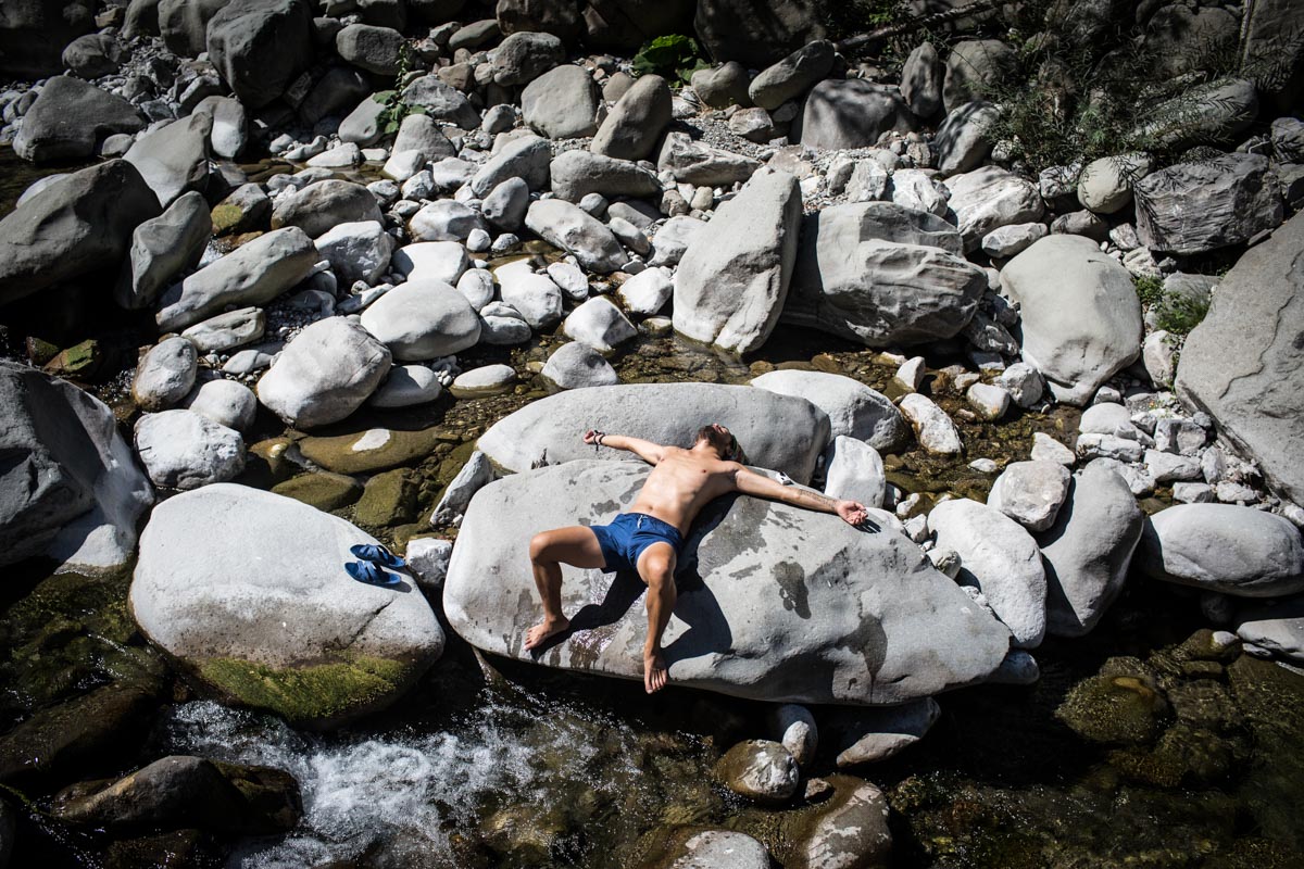 从米兰告别老友之后,面包车要继续南下,前往4个月来所有故事的目的地——罗马。可能是由于旅途在眼下接近尾声,贝姨情绪一度特别低落,在山区甚至拉着四个人飘移过弯了,好在技术过硬没什么事发生,接近旁晚突然拐到一处小道,停于这个河谷,当晚借着也不知道干净不干净的水洗了个澡,贝姨开了一盒廉价葡萄酒,老王生起篝火,整个河谷只有他们五个人,喝大了以后贝姨和老王躺在一块大石上对着星空放歌。第二天大家都说隐约听见像狼叫的声音。白天烈日当头,贝姨当然不能错过这个入水的好机会,途中遇到同样在晒太阳的当地居民提醒,千万不能一个人乱跑,因为这片区域确实有狼的存在。