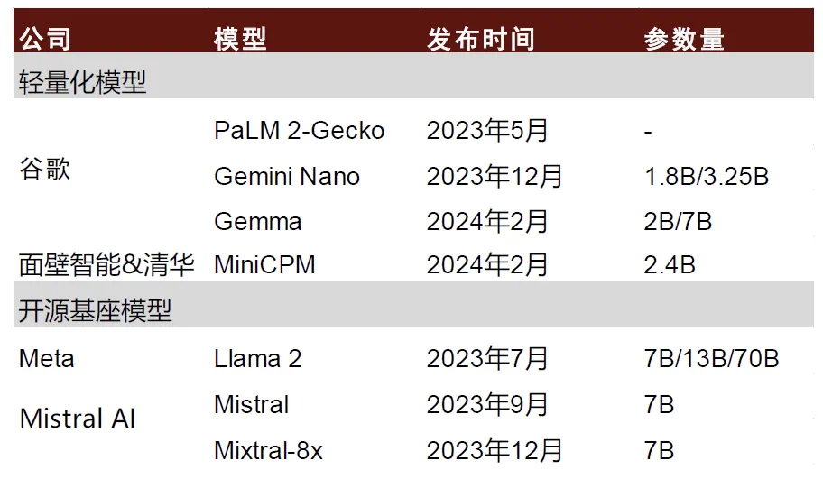 而在模型层方面,目前主要是正在为开发者提供轻量级大模型的厂商,比如Google、面壁智能和Meta。