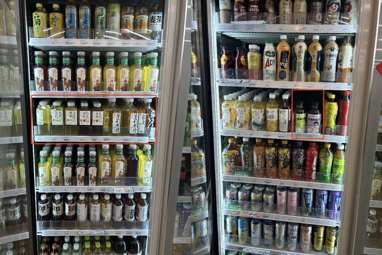 在上海普陀区一全家便利店,界面新闻看到饮品货架上果子熟了的柠檬茶与无糖茶被摆在显眼位置,与它相临的是农夫山泉东方树叶、维他柠檬茶、康师傅冰红茶等更加知名的品牌。