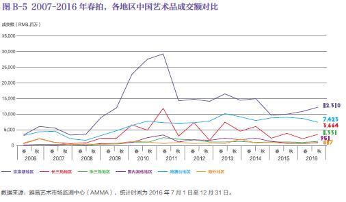 2017年2月15日,由雅昌艺术市场监测中心(AMMA)推出的《中国艺术品拍卖市场调查报告 2016秋》正式发布。据雅昌艺术市场监测中心(AMMA)不完全统计,截至2016年12月31日,2016年秋拍中国艺术品拍卖市场总成交额为265亿元人民币,同比去年秋拍上升了2.97%。在上拍量、成交量均有不同程度下降的前提下,成交额反而有所上升,报告中指出2016年秋拍中国艺术品市场的表现体现出“回暖”迹象。
