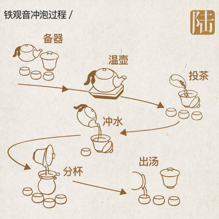 陈香型:以铁观音毛茶为原料,经过拣梗、筛分、拼配、烘焙、贮存五年以上等独特工艺制成的具有陈香品质特征的铁观音产品。
