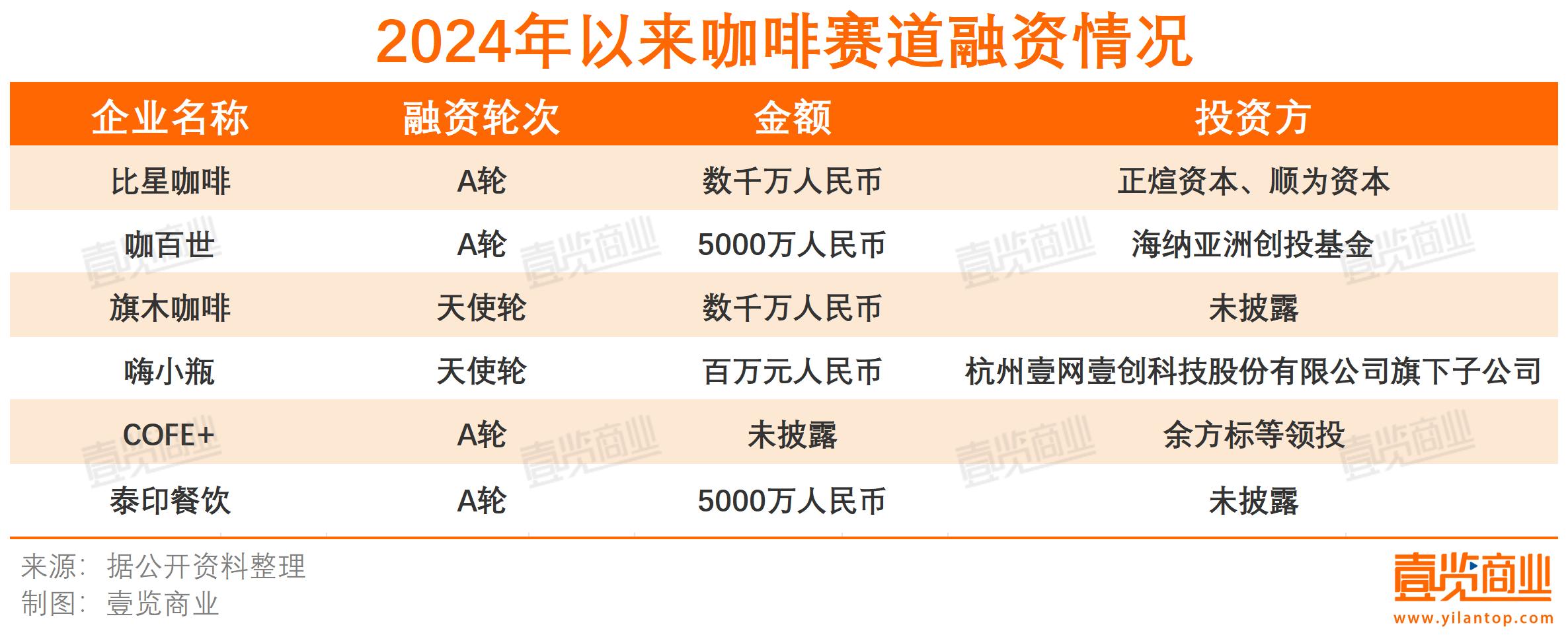 另据壹览商业不完全统计,4月份咖啡赛道共获得融资1起,披露融资金额5000万人民币,获资企业为泰印餐饮,据企查查显示,其旗下品牌为MUXING COFFEE慕幸咖啡。不过,壹览商业并未在窄门餐眼、极海、大众点评等平台搜索到该品牌的相关信息,这可能意味着该品牌目前的市场曝光度有限或正在低调布局。