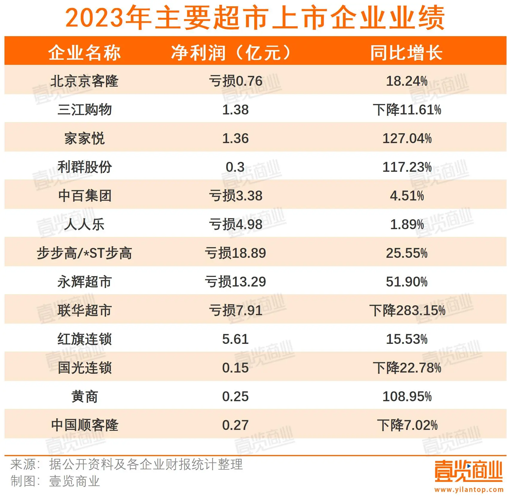 二是消费者消费需求减弱。一方面,国家统计局发布数据显示,一季度限额以上零售业单位中超市零售额同比增长2.2%,增速显著放缓;另一方面,商超企业业绩承压。数据显示,2023年,13家超市上市企业中,仅红旗连锁和黄商股份两家企业实现了营收与净利的双增。其中,成绩最为瞩目的红旗连锁,仅取得净利润5.61亿的成绩。