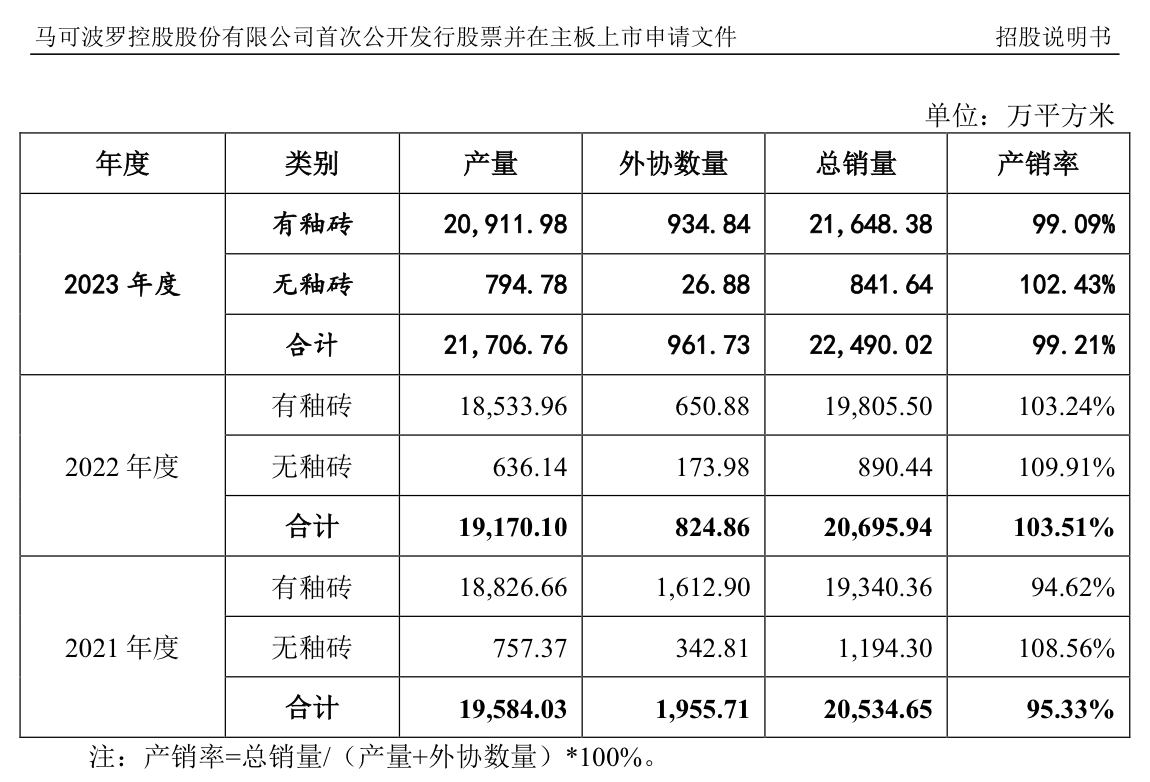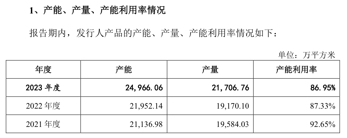 可以看看数据,2021年至2023年马可波罗的产能利用率分别为92.65%、87.33%、86.95%,呈现下降态势。至于产销率倒还是保持高位99.21%。