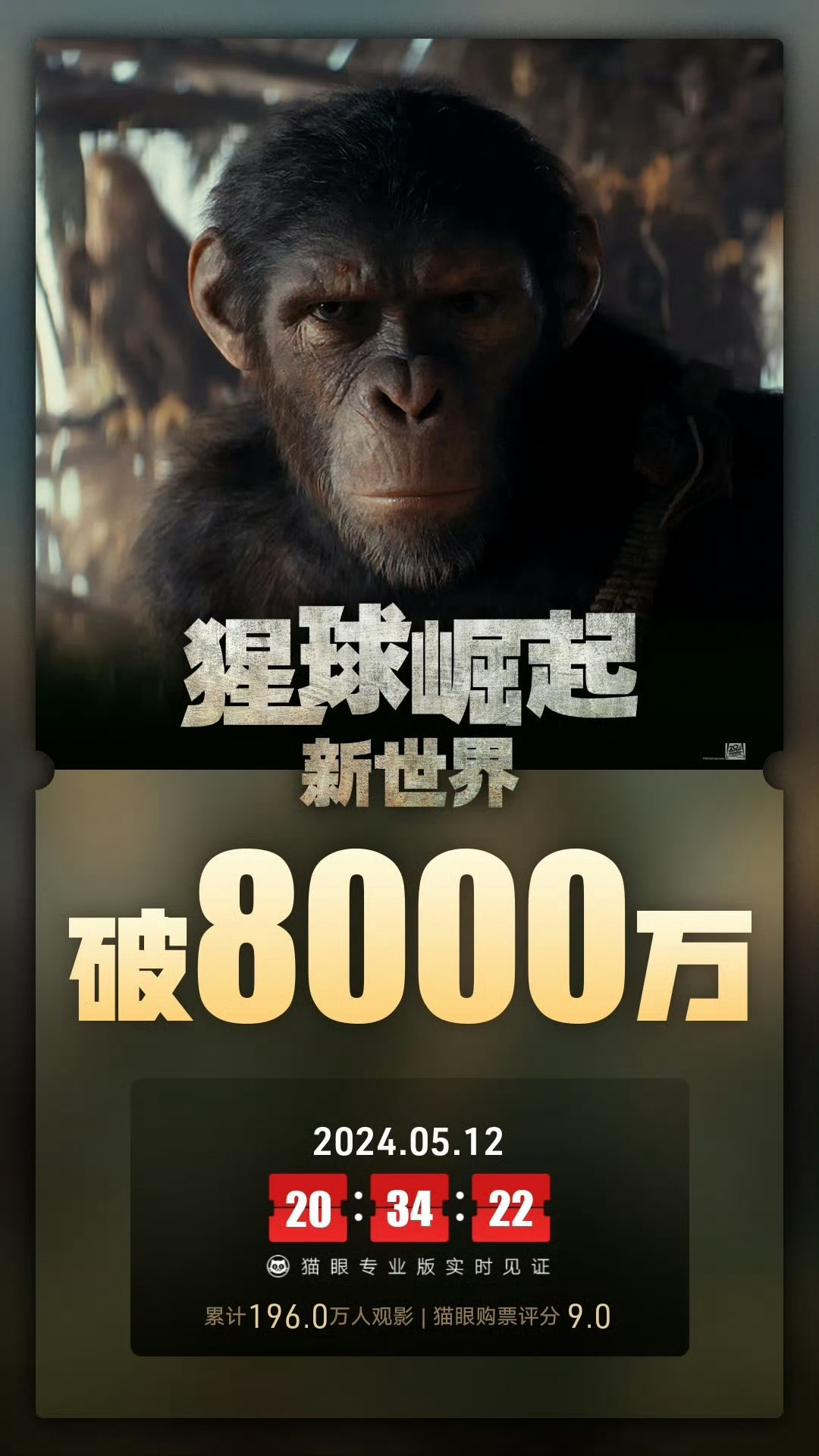 电影《猩球崛起:新世界》总票房破8000万