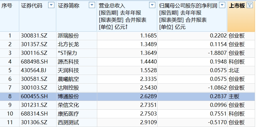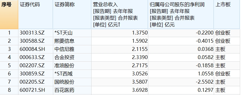 *ST天山(300313.SZ)、熙菱信息(300588.SZ)两家创业板公司也为亏损状态,且营收刚刚过亿。
