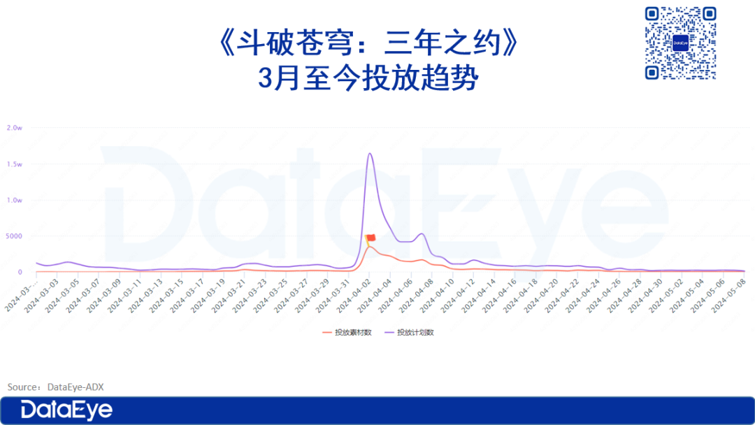 从DataEye数据来看,《斗破苍穹:三年之约》在买量投放方面,主要呈现出以下几个特点: