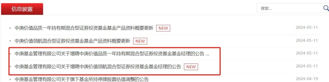 5月11日,中庚基金发布增聘基金经理公告,中庚价值领航、中庚价值品质一年持有期两只基金分别增聘刘晟、吴承根为基金经理。