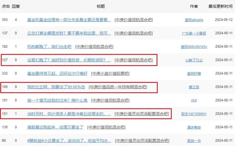 在天天基金网基金吧中,投资者面对丘栋荣一旦离职可能给公司造成的影响大多看法悲观。