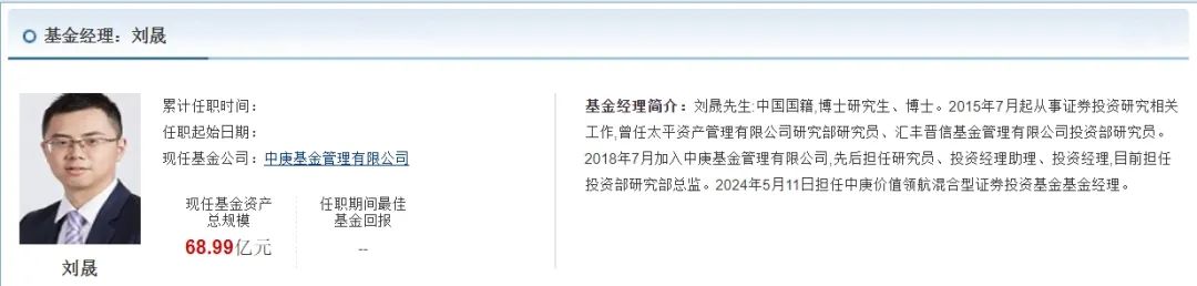 刘自2018年7月加入中庚基金,此前只担任过研究员、投资经理助理、投资经理、投资部研究部总监等职务。