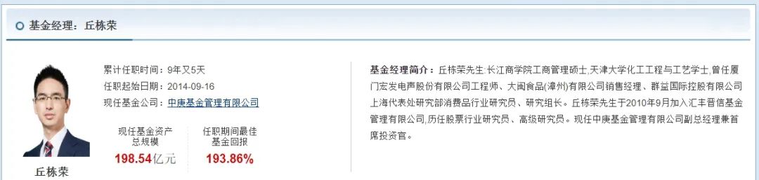 这也是丘栋荣目前单独管理的2只基金中的一只。