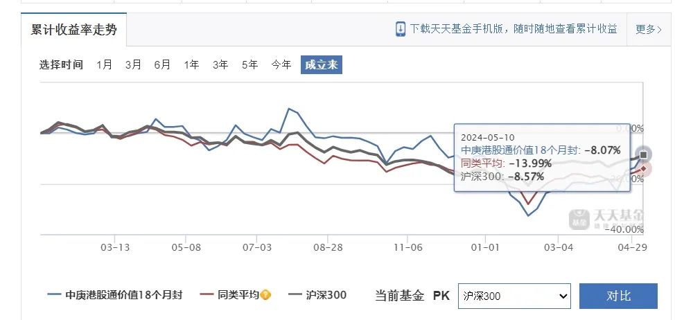 当然,丘栋荣也有马失前蹄的时候,其曾在2023年1月发行的一只封闭式基金,即中庚港股通价值18个月封闭基金(下称“中庚港股通”)至今依然亏损。