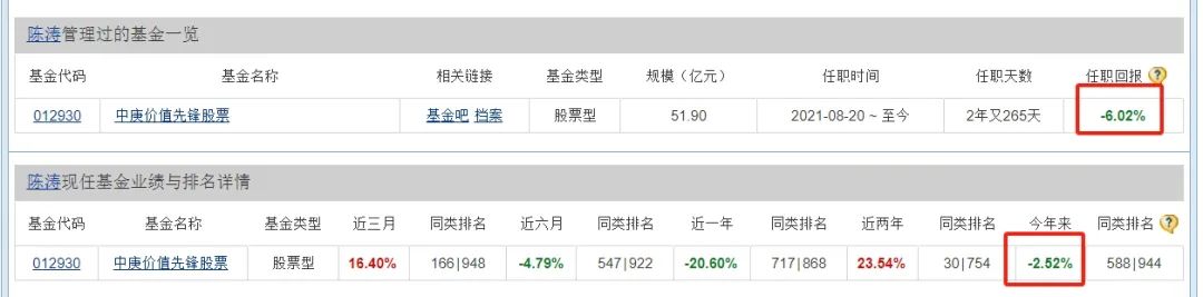 中庚基金现有的6只基金中,只有1只丘栋荣没有参与管理,就是陈涛自2021年8月就开始管理的中庚价值先锋股票基金。