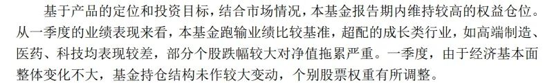 同时其表示:“持仓结构未作较大变动”,言外之意,就是抱着之前的大部分股票,等着行情回暖。至于效果如何,尚待观察。