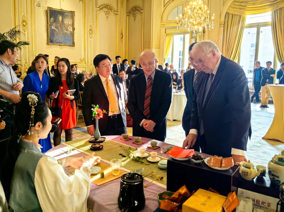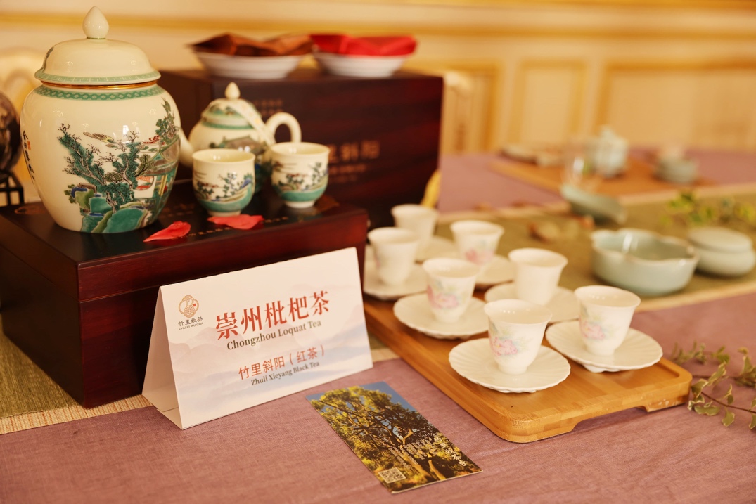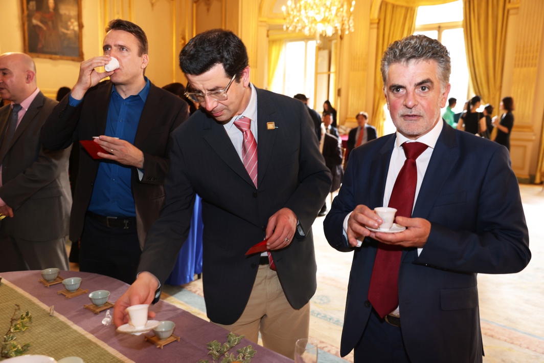 会后晚宴上,嘉宾们围绕中法文化元素进行了更广泛、自由的交流互鉴。其中,来自中国四川成都的特产“崇州枇杷茶”成为晚宴中备受瞩目的焦点。“竹里斜阳”枇杷茶以其特有的果香蜜韵和异香萦绕的饱满芬香,赢得了现场国际友人的一致好评。