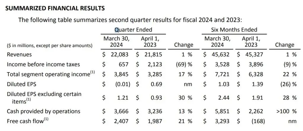 本周三,华特迪士尼公司(WaltDisney Company)公布了截至3月30日的2024财年第二季度财报,其中营收从去年同期的218亿美元增长至220.8亿美元,同比增长了1%。季度的每股收益(EPS)为1.21美元,超过预期和去年同期。