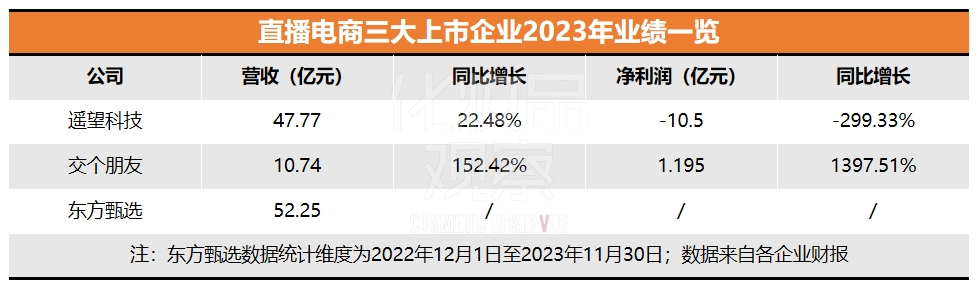 上述三家企业营收突破的关键因素,系直播带货的增长。