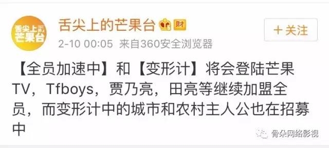 无独有偶,湖南卫视另一档节目《变形计》也将回归,并登陆芒果TV,此节目自2015年第12季收官之后,2016年并未推出,而今年又宣布将在网络端播出。