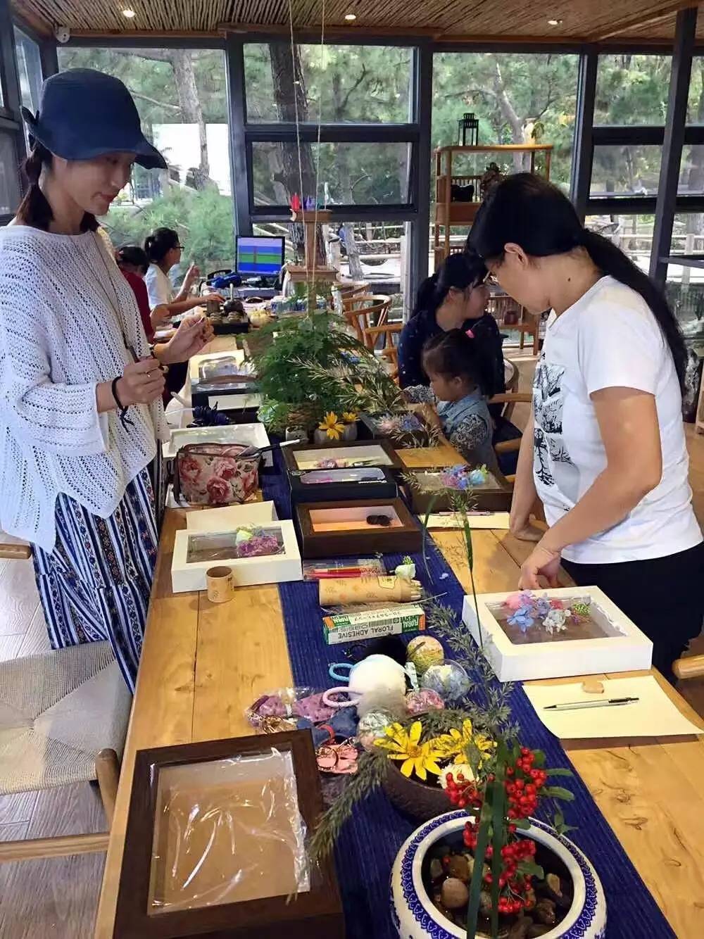 ▲客人在微澜山居体验朴宿·拾期/沾花手工活动