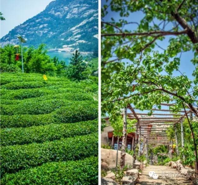 ▲崂山泉心河茶场一景,同属于朴宿酒店管理公司,紧邻著名的崂山水库,风景十分优美。入住微澜山居,即可体验该小众游线路,有四季采摘,还可以现场炒茶、品茶。