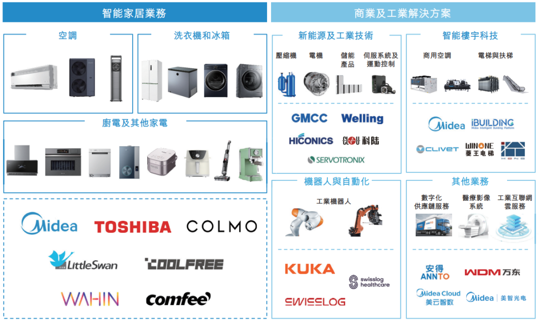 美的品牌矩阵(智能家居业务为C端品牌,商业及工业解决方案为B端品牌),图源美的集团招股书