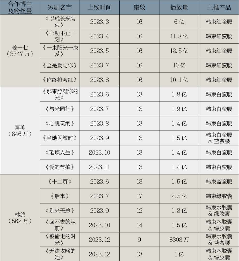 韩束2023年部分定制短剧 图源:BeautyNEXT