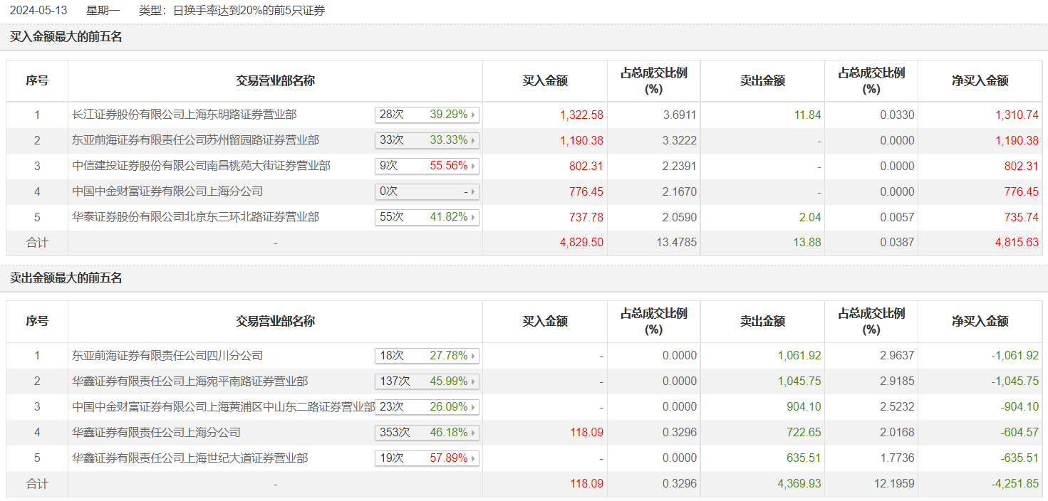 具体来看,知名游资现身龙虎榜,长江证券上海东明路证券营业部、东亚前海证券苏州留园路证券营业部分别买入1322.58万元、1190.38万元;东亚前海证券四川分公司、炒股养家(华鑫证券上海宛平南路证券营业部)分别卖出1061.92万元、1045.75万元。