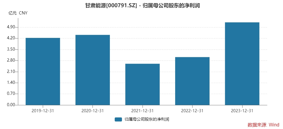 甘肃能源主要从事水力发电、风力发电和光伏发电业务。公司2023年实现营收26.41亿元,同比增长29.05%;归母净利润5.21亿元,同比增长72.62%。公司2024年第一季度盈利5150.27万元,上年同期亏损4255.82万元。
