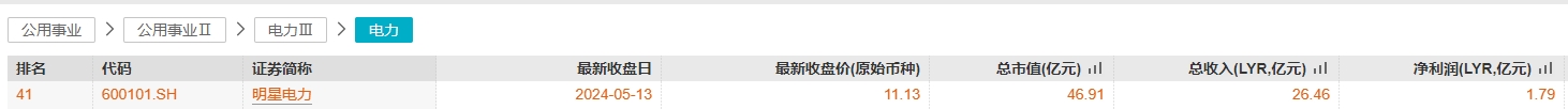 两连板明星电力主营电力、自来水、综合能源服务等。公司2023年实现营收26.66亿元,同比增加12.16%;归母净利润1.79亿元,同比增加12.66%。公司目前已投运9座充电站,共计100个充电终端。今年第一季度,公司实现营收6.98亿元,同比增长7.06%;实现归母净利润0.7亿元,同比增长20.46%。