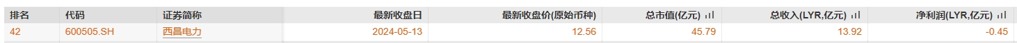西昌电力录得6天4板。公司主营发电、供电、电力工程设计安装。其中,发电、供电是公司的核心业务;发电包括水力发电、太阳能光伏发电、风力发电。2023年,公司实现营收14.05亿元,同比增长9.47%;亏损0.44亿元,同比盈转亏。