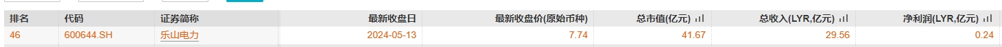 5月13日,乐山电力因成为连续三个交易日内收盘价格涨幅偏离值累计20%登上龙虎榜。乐山电力当日收报7.74元,涨幅达9.94%,换手率13.96%,成交额5.65亿元。5月10日至5月13日,期间涨幅20.94%,累计偏离值21.14%,区间成交额8.48亿元。