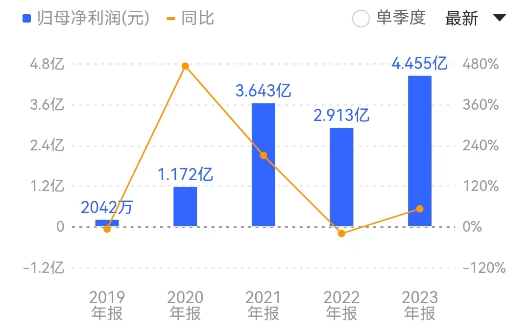 从业绩来看,2023年,得益于国际金价上涨以及黄金采选业务产销量大幅增加等因素,玉龙股份在营收同比下降77.83%的情况下,归母净利润增长52.90%,达到4.46亿元,创下公司上市以来的业绩新高。