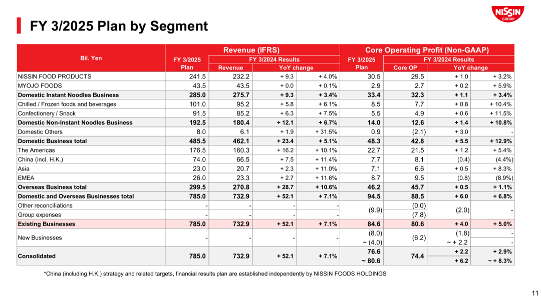 展望2025财年(2024年4月1日至2025年3月31日),日清预计,中国分部的收入将达到740亿日元,同比增长11.4%;核心经营溢利为77亿日元,同比下降4.4%。